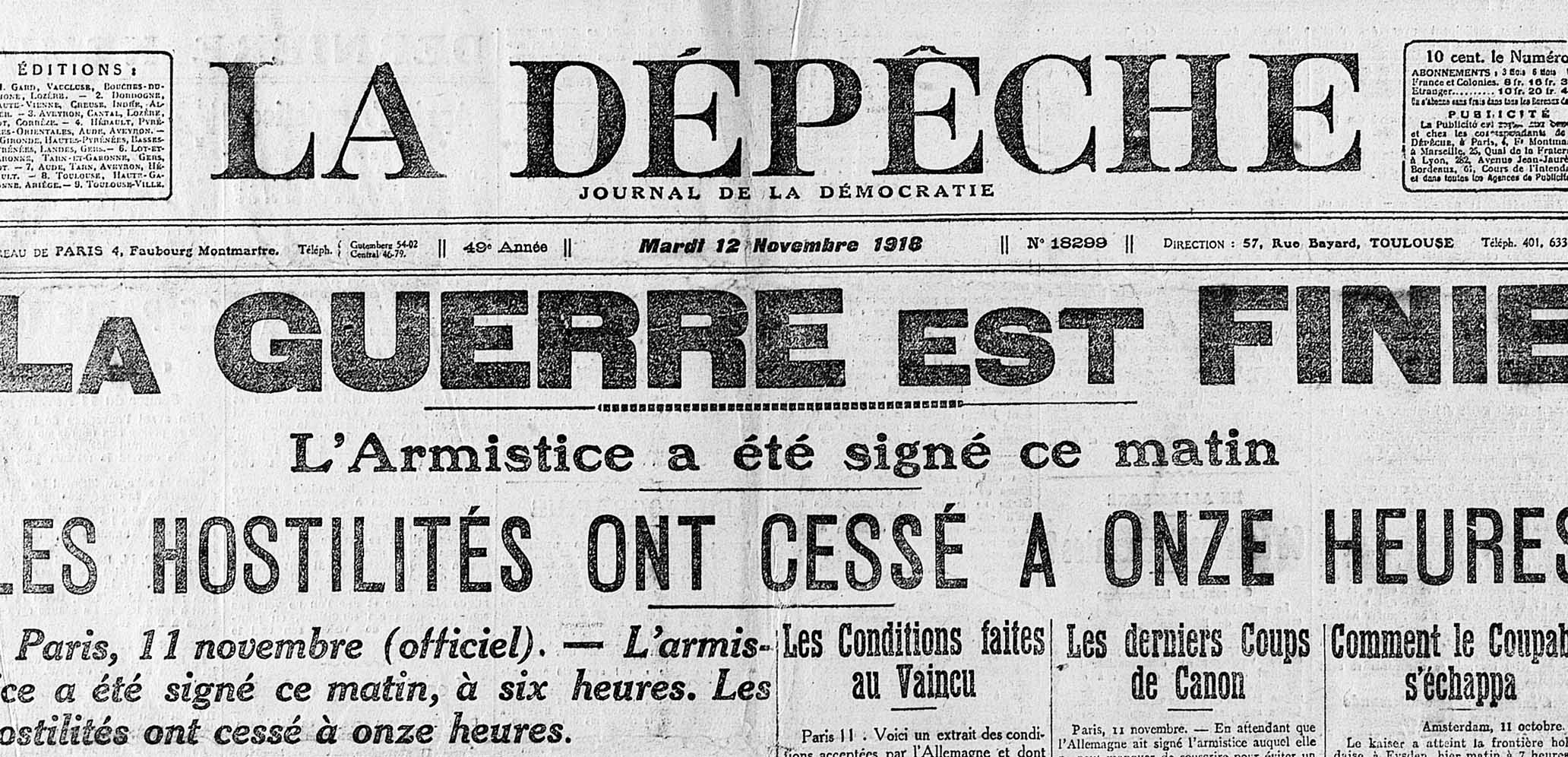 La Une du journal la Dépêche en date du 12 novembre 1918